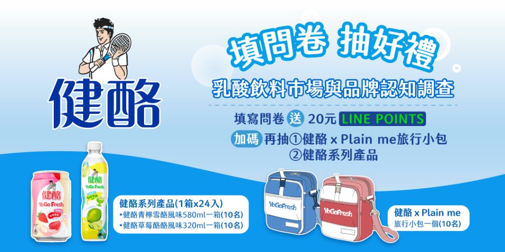 獎品:健酪 x Plain me 旅行小包(10名)&健酪系列產品(20名)
