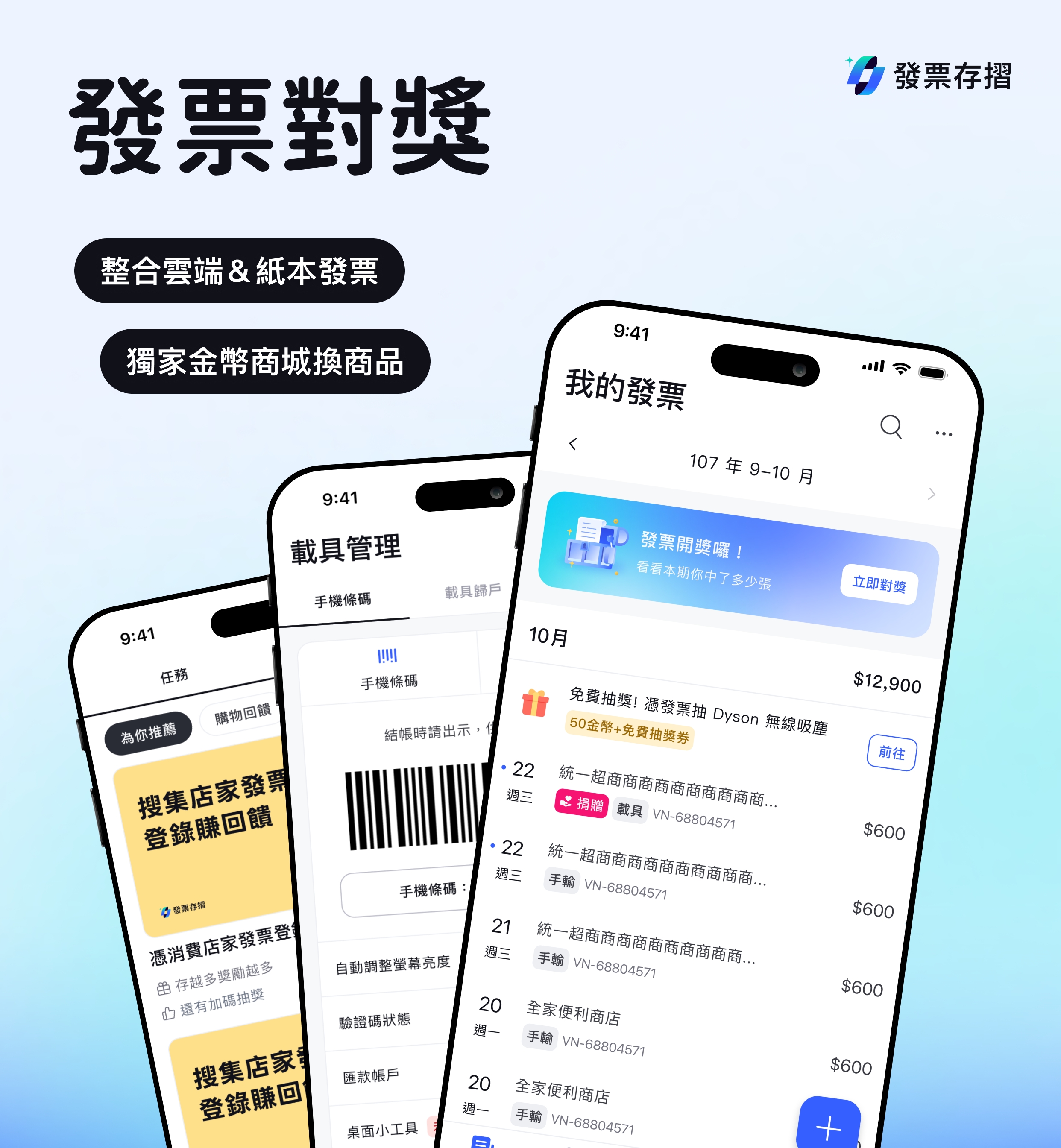 🧾雲端發票|💰快速對獎|🗂️載具管理|🎁集點兌禮