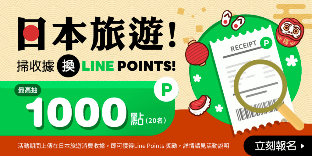 上傳旅日收據拿獎勵,再抽LINE POINTS1,000點!(共20名)(2025.10更新)