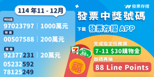 統一發票中獎號碼 2025(114)11-12月統一發票開獎號碼、雲端專屬中獎號碼與兌領獎注意事項 114年11-12月統一發票中獎號碼、雲端專屬中獎號碼、領獎教學與注意事項。發票存摺整理2025年11-12月統一發票開獎號碼、雲端專屬中獎號碼!對獎機會最多的發票APP就在發票存摺。2026-01-25